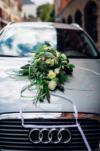 Hochzeitsblumen Auto - In der regel fährt das dekorierte auto die braut zur kirchlichen trauung und im anschluss das frisch getraute paar zur hochzeitsfeier.